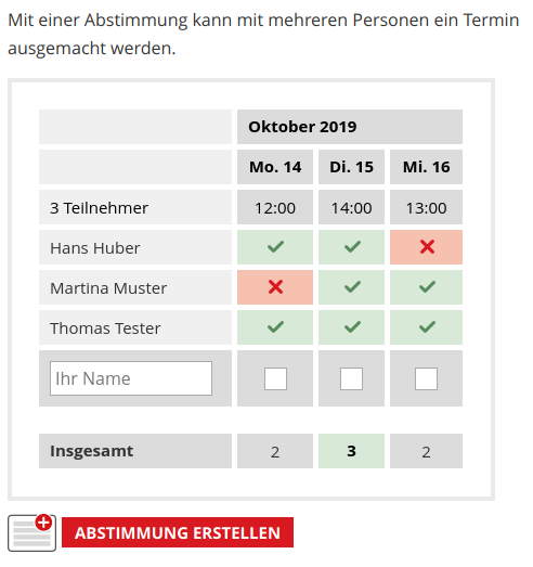 4. Nachdem sich die Teilnehmenden eingetragen haben, kann der Administrator bzw. die Administratorin einen Termin fixieren und die Abstimmung schließen.